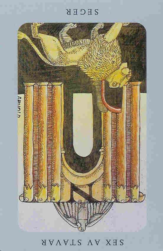 This card carries the number 11. In the Rider-Waite deck, Strength and Justice have swapped places because Waite saw links with the astrological signs Leo and Libra.