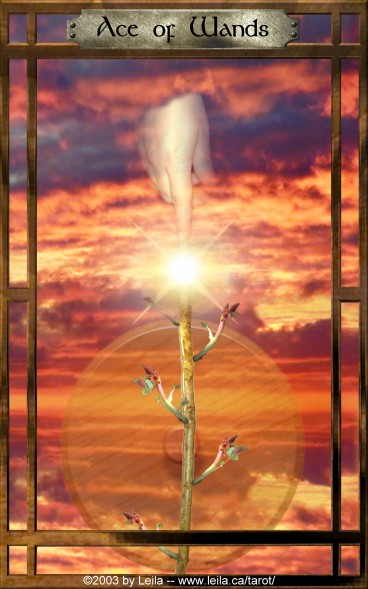 The ace of wands represents the beginning of an idea. The element fire and the number 1 give a powerful combination: enterprise and new beginnings apply to both. This is an energetic combination, which is why the card is generally considered a positive one. Spring is the season associated with this card.