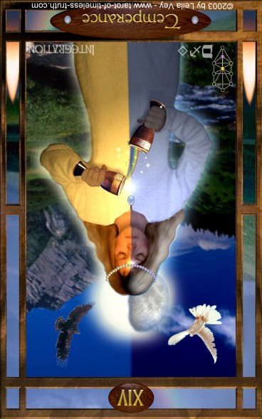 With Death, an important decision made with The Hanged Man was given shape by letting go of the old. Now you're in a transitionary period and this Temperance card is a place of rest during the journey through the underworld.
