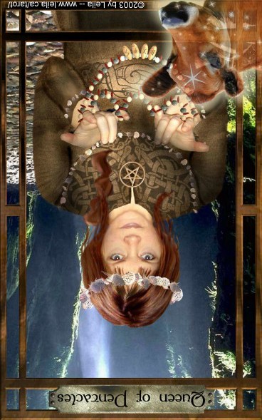 The Queen in the suit of Pentacles becomes aware of her Earthly attributes; she's reliable and sober, able to give good advice.