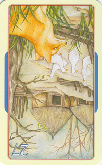 When this card falls, it might serve to point your attention to whatever is new and fresh in your life; a new job, study, love relation, business relation, project, etc. Look to the other cards in the reading to see what more can be said about it.