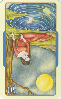 The 10 of Wands is therefore the transition from the element Fire (associated with Wands) to the element Water, associated with Cups. As you might imagine, this not the easiest of transitions.
