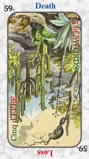 When this card falls, it is time to deal with grief cropped up over possibly a long time. It's now time to get rid of both the grief and the blockages it's caused in you.