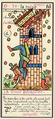 The card of The Tower goes by different names in different Tarot games. Some call it The Tower of Destruction, or The House of God, or Tower of the Light.