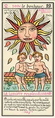 With The Sun the third and final cycle of Tarot is commenced. The first cycle was the upperworld or childphase, a place to start and gain inputs. Here you gained wisdoms, knowledge and ideas. The second cycle was the underworld or adult phase or assignments phase, the hard cycle where you had to really work for gains. This third cycle that starts at The Sun, is the phase of rewards, of enjoyment of results.
