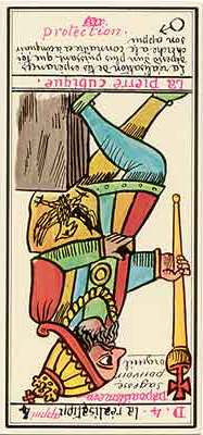 The number this card carries is 15, composed that is 6. The resemblances to the first '6' card (The Lovers) are remarkable; in both cards security is a central theme.