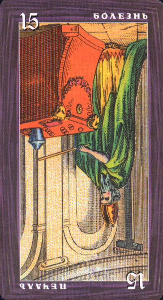 The number this card carries is 15, composed that is 6. The resemblances to the first '6' card (The Lovers) are remarkable; in both cards security is a central theme.