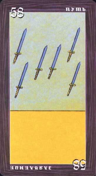 The 5 of Swords is about facing reality. The 5 is an assignment number, and in the slighly more difficult suit of Swords, it means you face a difficult challenge where your past experiences could hold you down.