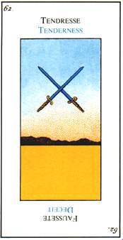 When this card falls, it might serve to point your attention to whatever is new and fresh in your life; a new job, study, love relation, business relation, project, etc. Look to the other cards in the reading to see what more can be said about it.