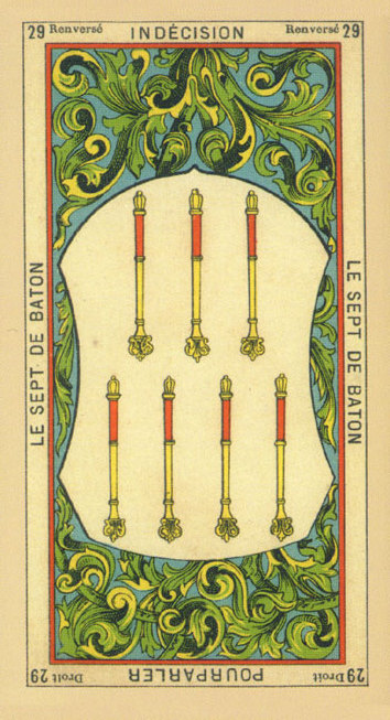 With the 7 of Wands, the striving cycle starts. It is about having the determination to complete your ideas, despite the fact that that might cause you some discomfort.