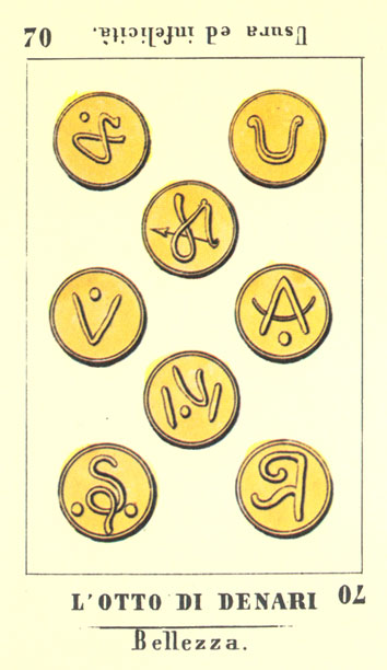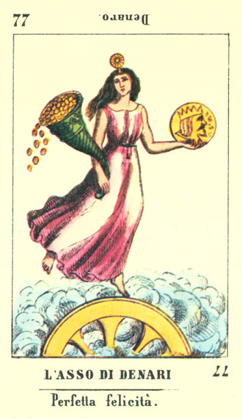 The number 1, associated with this Ace card, is the number of a fresh start with yet more new impulses coming your way. It might be compared to The Fool, the first card of the major arcana.
