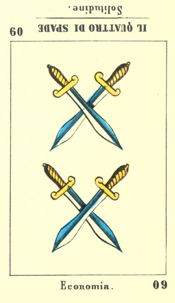 The 9 of Swords represents relief from cropped-up grief. The number 9 is a number of reward and rest and accomplishment. In the element of Swords there is not a lot of time for rest, but without any rest you'd just burn yourself out.