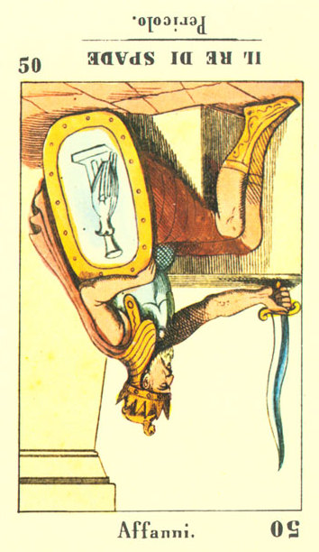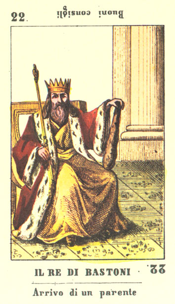 The King of Cups uses his intuition to achieve his ideals. Since Cups are turned inward, and Kings turned to the outside world, this card might be a difficult one, or it could be a powerful one.