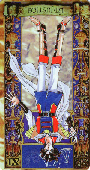 This card carries the number 11. In the Rider-Waite deck, Strength and Justice have swapped places because Waite saw links with the astrological signs Leo and Libra.