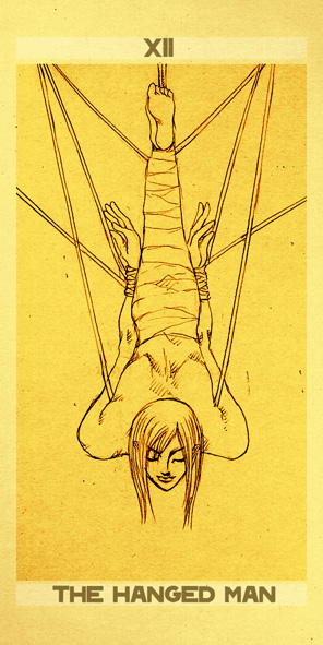 First you learned that you're not a plaything of fate, that you can make your own choices. Then you've learned how to fend for yourself and face yourself. Now, at The Hanged Man, you can learn to let go. You no longer have to cling to old values. You've found strength in yourself and by letting go, you allow growth.