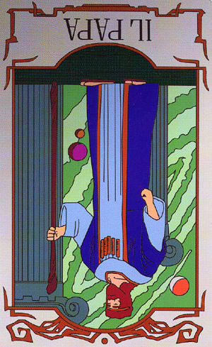 Where The Emperor is the chief of worldly power, The Hierophant is the head of spiritual matters.