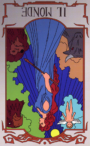 This card falls when you've completed all assignments, overcome all obstacles and are completely at peace with yourself due to your accomplishments. Yet Tarot wouldn't be Tarot if it didn't challenge you to enter entirely new worlds and start the process all over again.