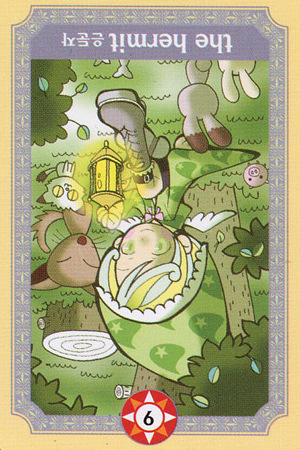 The Hermit shuts out the world and retreats into solitude to better understand some spiritual aspect of life. He opens to the cosmos and lets it's wisdom sink in. Hermits are often seen as wise old men who can guide a traveller along a journey.