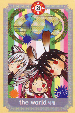 The World carries the number 21. As a composed number that is 3. The World is the third 3 in the Major Arcana. 3 is a reward number, so the third 3 must be even more powerful.