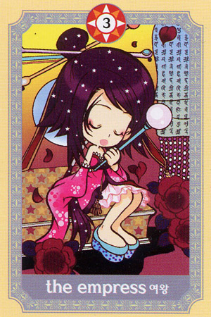 The Empress carries the number 3. This is the number of birth, of plenty, of harvest, of summer, of the first results. The number 3 stands for joy and fun, for creativity and fantasy, for warmth and humor.