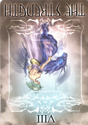 This card carries the number 11. In the Rider-Waite deck, Strength and Justice have swapped places because Waite saw links with the astrological signs Leo and Libra.