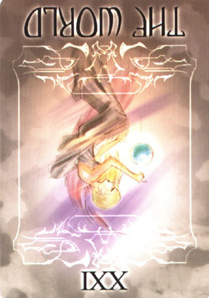 This card falls when you've completed all assignments, overcome all obstacles and are completely at peace with yourself due to your accomplishments. Yet Tarot wouldn't be Tarot if it didn't challenge you to enter entirely new worlds and start the process all over again.