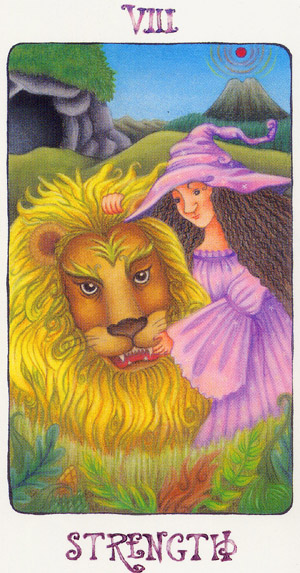 This card carries the number 11. In the Rider-Waite deck, Strength and Justice have swapped places because Waite saw links with the astrological signs Leo and Libra.