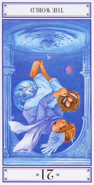 This card falls when you've completed all assignments, overcome all obstacles and are completely at peace with yourself due to your accomplishments. Yet Tarot wouldn't be Tarot if it didn't challenge you to enter entirely new worlds and start the process all over again.