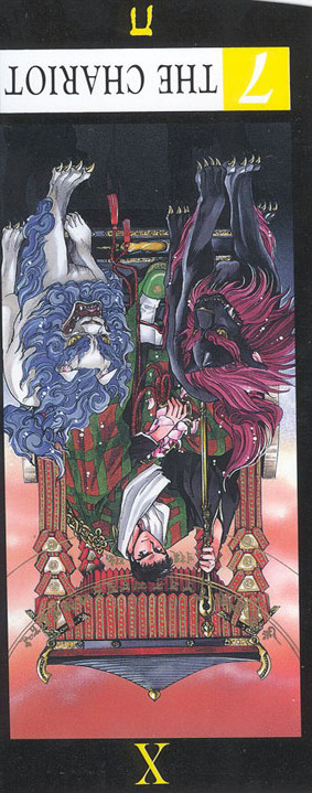 During the prevous card, The Lovers, all the wisdom of the first cards in the deck has been processed and a choice was made for personal growth. Now it's time to do something with all this baggage, to actually travel the road. A lot has been done so far, wisdoms have been accumulated and integrated into one's personality.