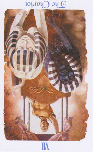 During the prevous card, The Lovers, all the wisdom of the first cards in the deck has been processed and a choice was made for personal growth. Now it's time to do something with all this baggage, to actually travel the road. A lot has been done so far, wisdoms have been accumulated and integrated into one's personality.