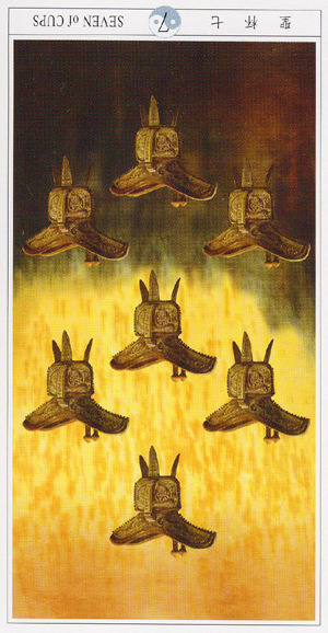 If a card is upside down, that is the common notation for the opposite meaning of the card, also known as the "negative" or "reversed" meaning of the card.