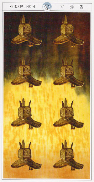 8 is an assignment number, and in the suit of Cups, it is about overcoming the urge to sink into depression caused by view on the long road ahead.