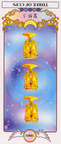 The 3 of Cups represents hope, faith and love. The 3 is a reward number and in this suit of Cups your feelings during that number will be that of joy and self-contentment.