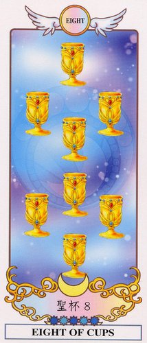 8 is an assignment number, and in the suit of Cups, it is about overcoming the urge to sink into depression caused by view on the long road ahead.