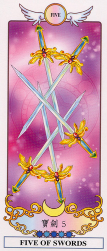 The 5 of Swords is about facing reality. The 5 is an assignment number, and in the slighly more difficult suit of Swords, it means you face a difficult challenge where your past experiences could hold you down.