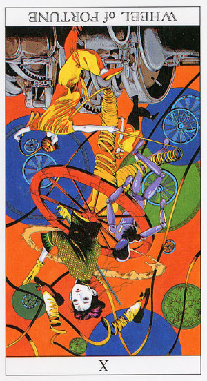 With the Wheel of Fortune, the second major cycle of Tarot commences. The first cycle in the first cards of the deck was about development as a child, accumulating wisdoms and integrating them into your personality. This second cycle is about your development as an adult. It is a more demanding cycle. You'll have to see if you can face what the world throws at you.