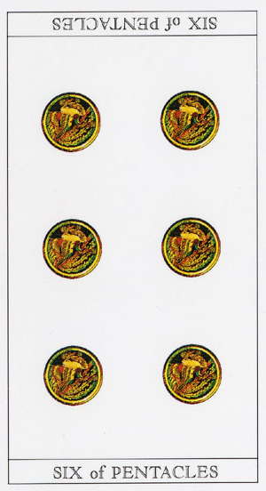 The 6 of Pentacles signals that help has arrived or will arrive soon. The number 6 represents security and reward. In the Earth element attached to Pentacles, this means material rewards are likely coming your way.