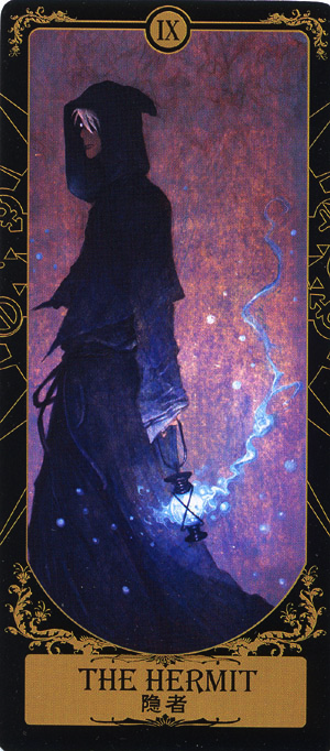 The Hermit carries the number 9. This is the highest base number. After 9 the composed numbers emerge. Therefore the number 9 is the gateway to a higher order. It is also a place to rest before embarking on the next leg of the journey.