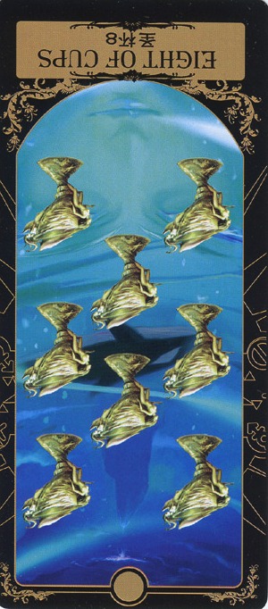 8 is an assignment number, and in the suit of Cups, it is about overcoming the urge to sink into depression caused by view on the long road ahead.