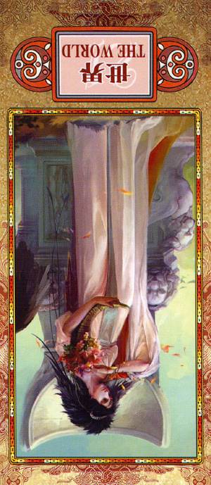This card falls when you've completed all assignments, overcome all obstacles and are completely at peace with yourself due to your accomplishments. Yet Tarot wouldn't be Tarot if it didn't challenge you to enter entirely new worlds and start the process all over again.