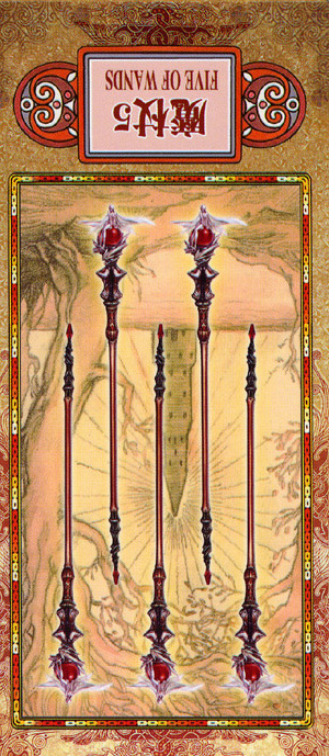 The 5 of Wands represents competition. The 5 is the second assignment number, and therefore a difficult card. 5 combined with the Wand's element fire challenges you. You'll have to fight hard for your idea, but you stand a good chance of succeeding.