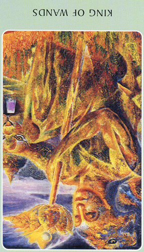 The King of Wands uses the properties of Wands (vitality, optimism, enthousiasm) to go out with confidence. He is seen as a leader with charisma.