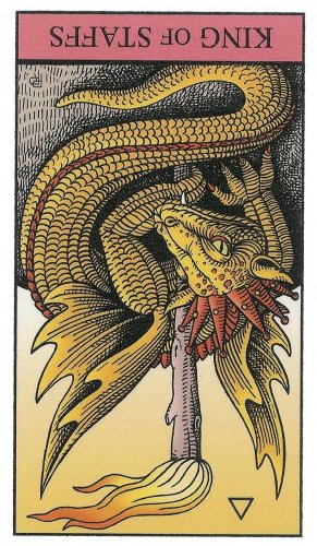 The King of Wands uses the properties of Wands (vitality, optimism, enthousiasm) to go out with confidence. He is seen as a leader with charisma.