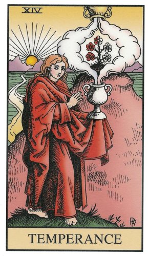With Death, an important decision made with The Hanged Man was given shape by letting go of the old. Now you're in a transitionary period and this Temperance card is a place of rest during the journey through the underworld.