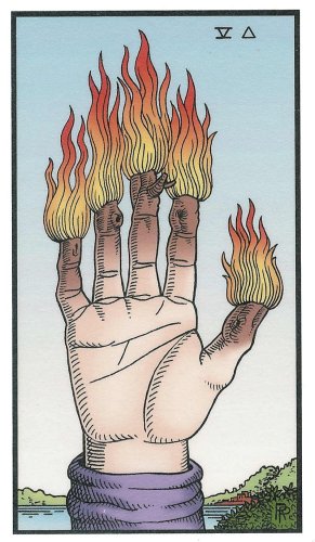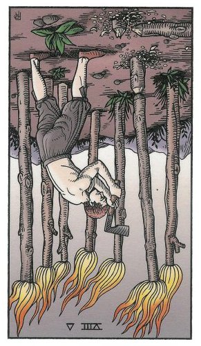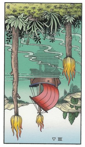 This card is about exposing your new ideas to the world. The Wand's element fire goes well with the number 3, as 3 is an output number, a number of results. Fire likes getting to results quickly.