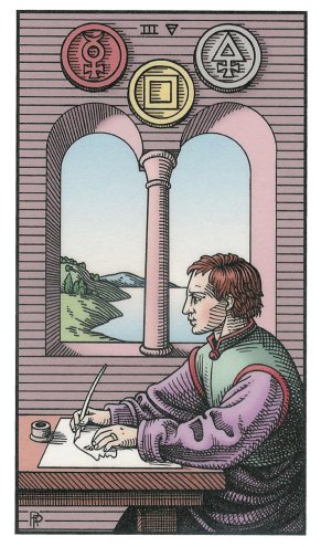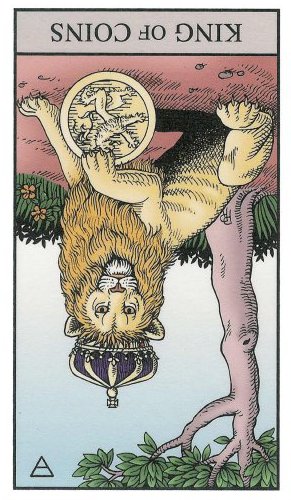 The King of Pentacles uses his Earthly attributes to rule. He goes about his work like an old style business man; he avoids unnecessary risks, aims for real results, and acts from confidence.