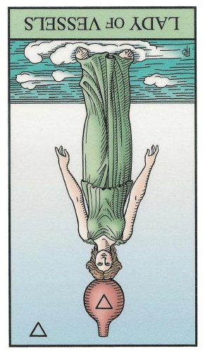 When this card falls, it might serve to point your attention to whatever is new and fresh in your life; a new job, study, love relation, business relation, project, etc. Look to the other cards in the reading to see what more can be said about it.