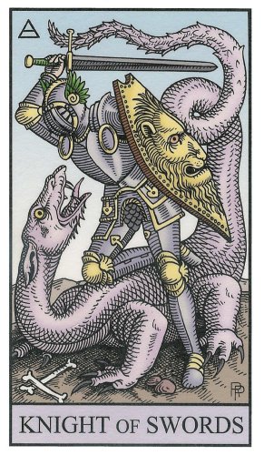 The Knight of Swords lacks the naivety of the Knight of Wands, he has analyzed the terrain ahead and weighed his options there. He knows what his own nature can throw into the mix, but does not let himself be held idle by that. The activities ahead will likely include the solving of conflicts and problems on your road to your ideal.