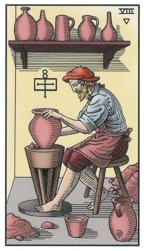 8 is an assignment number, and in the suit of Cups, it is about overcoming the urge to sink into depression caused by view on the long road ahead.