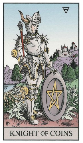 The Knight of Pentacles doesn't like to get worked up about anything. He prefers to make quiet steady progress by sticking to a persevering attitude, while not allowing himself to become exhausted or stressed.